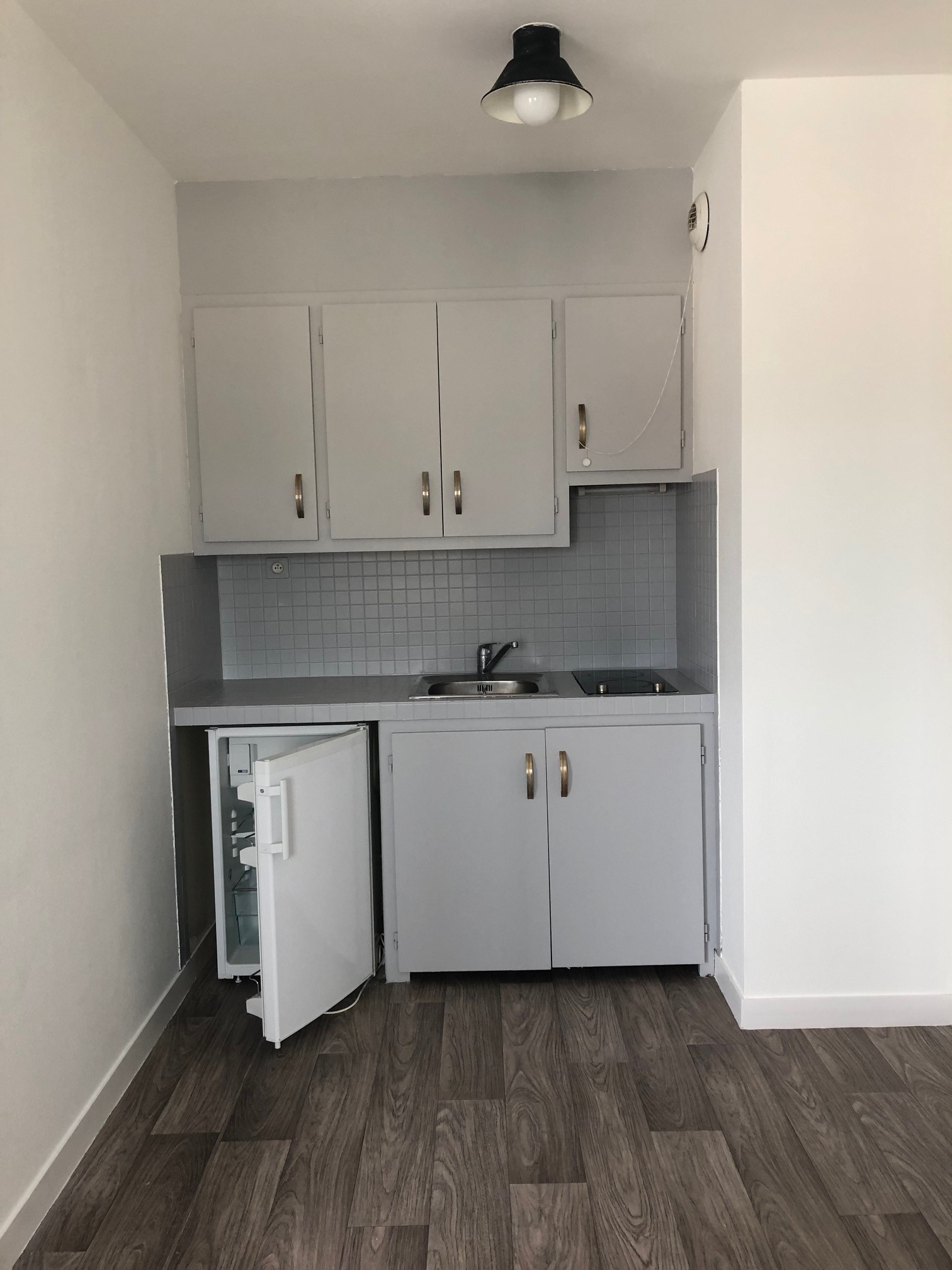 CUISINE SEPAREE AVEC MOBILIER, REFRIGERATEUR ET PLAQUES VITROCERAMIQUES