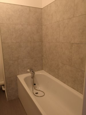 CUISINE SEPAREE AVEC RANGEMENTS ET PLAQUES VITROCERAMIQUES. GRANDE PIECE A VIVRE. SDB AVEC BAIGNOIRE.