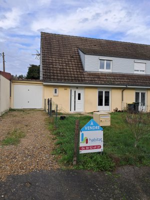 Maison mitoyenne de 91 m² avec garage et jardin. Elle se compose au rez-de-chaussée d’un entrée, d’un séjour traversant et lumineux, d’une cuisine, d’une buanderie, d’un WC. A l’étage, deux chambres, un bureau et une salle de bain.