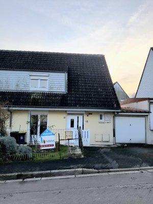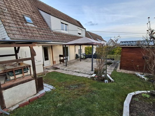 Maison mitoyenne de 91 m² avec garage et jardin (environ 90 m² à l'arrière).